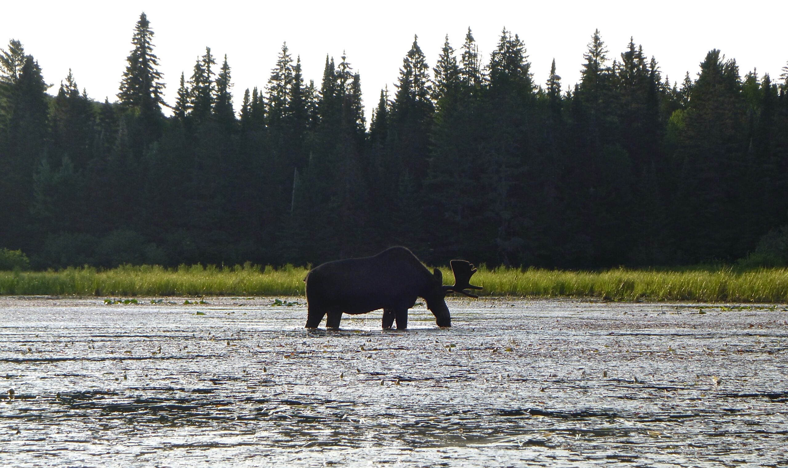 - A young bull moose stops to snack on the abundance of aquatic vegetation. Lake Sasajewun, Algonquin Park.