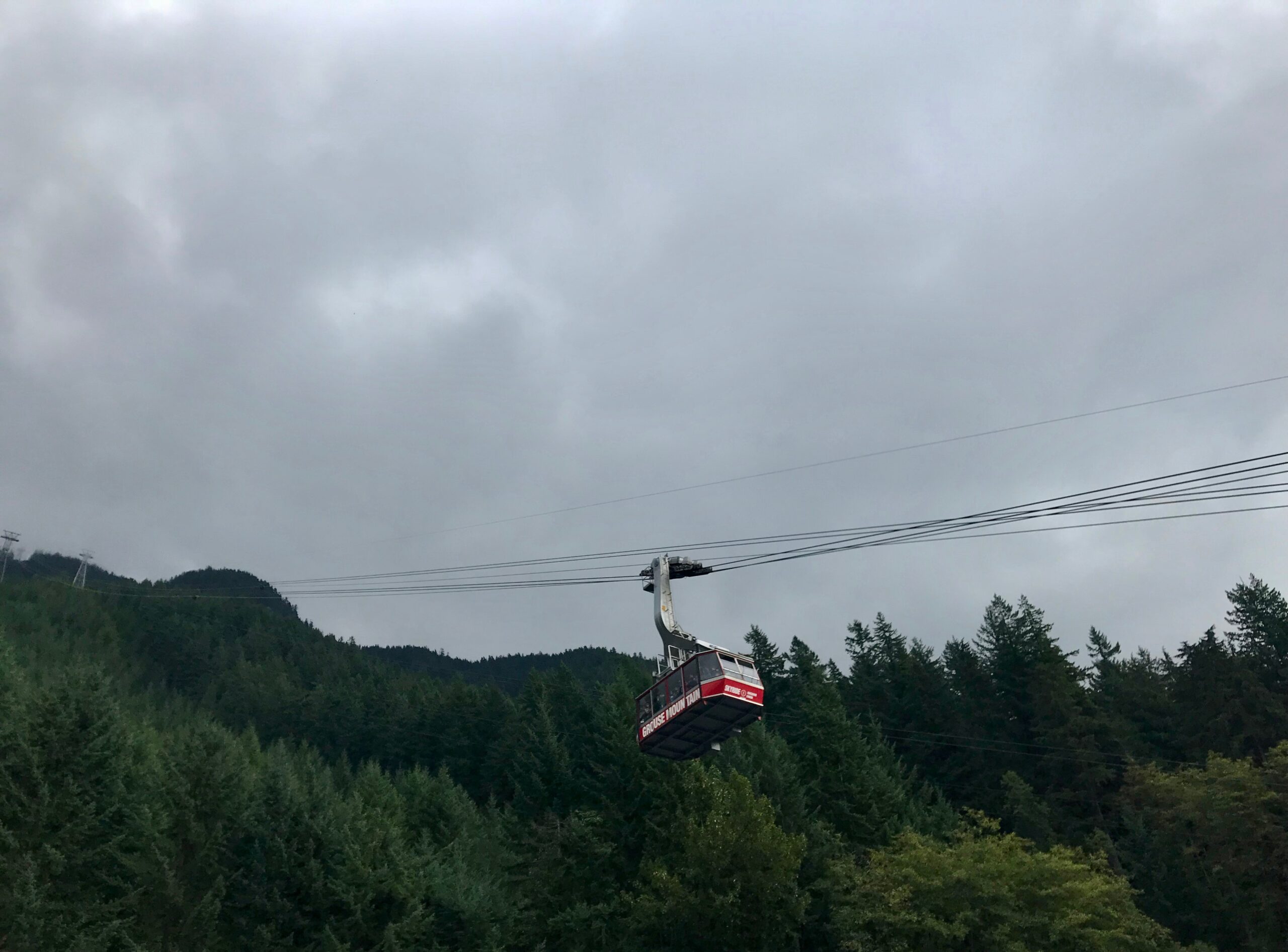 - A gondola ascends up the mountain and into the misty clouds. Sitting high above the green expanse below, it offers a spectacular view of one of Canada’s major metropolitan cities. Grouse Mountain, North Vancouver, BC.