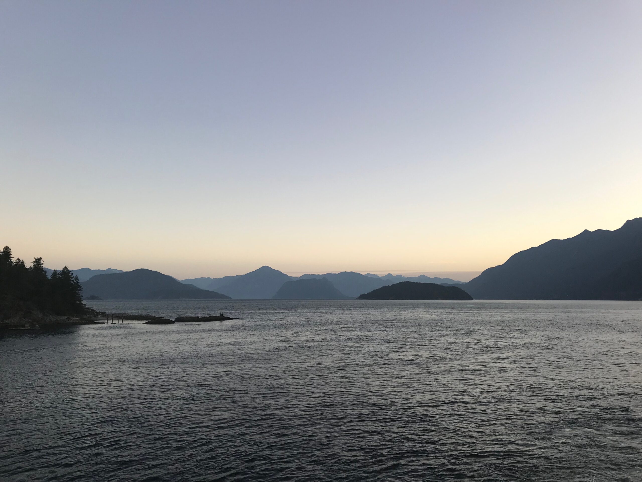 - Sunrise over the Strait of Georgia captured from the Horseshoe Bay Ferry emphasizes British Columbia’s mountainous landscape. Vancouver, BC.