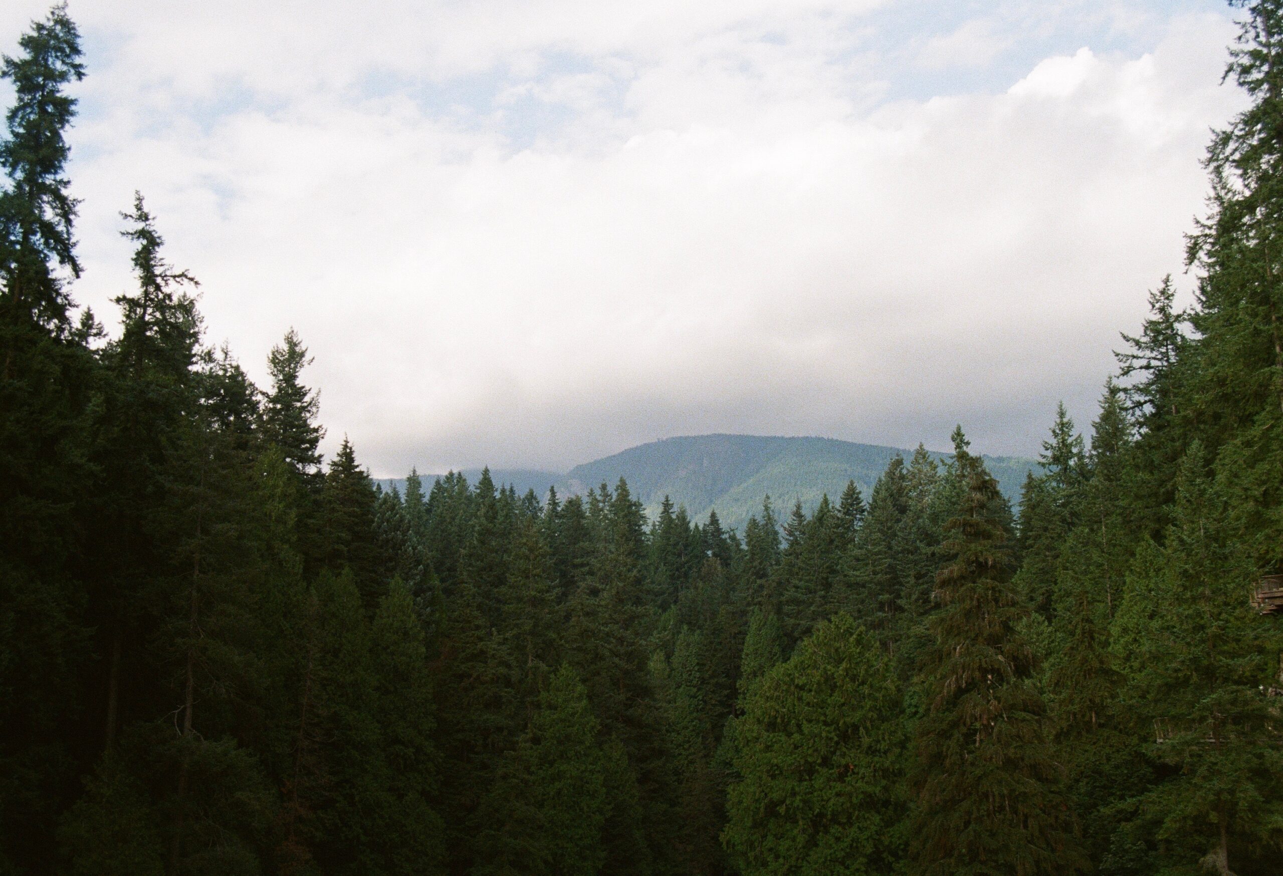 - The treeline over the Capilano River Valley frames the distant Grouse Mountain. Capilano Suspension Bridge, North Vancouver, BC.